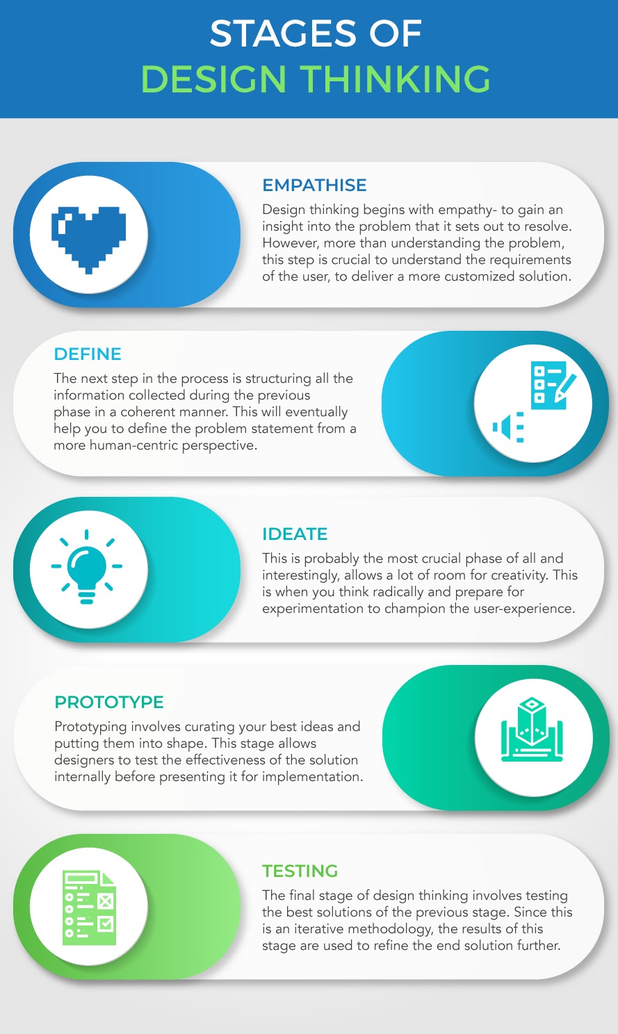 Design thinking aids organizations in identifying, comprehending, and resolving issues that afflict them and their consumers. It prioritizes ideas over procedures, as well as creative thinking above established practices.